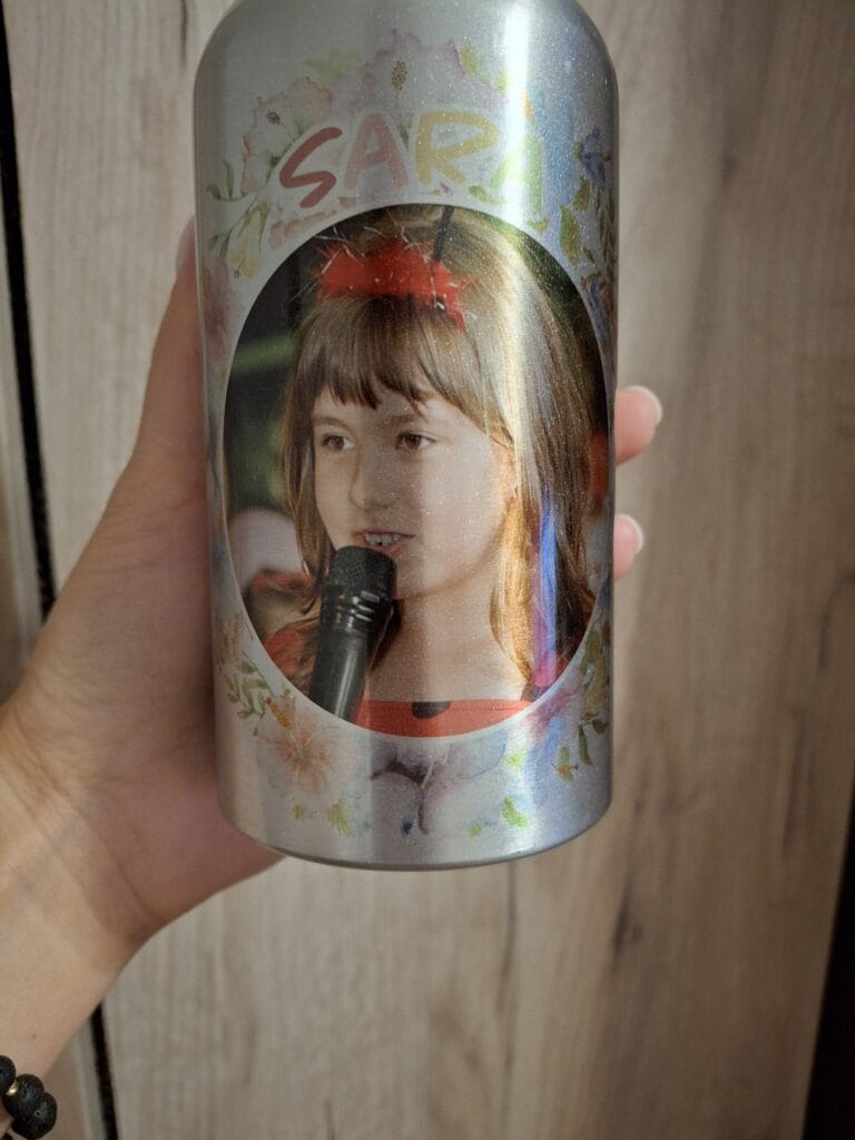 Bidonul personalizat o va face să zâmbească de fiecare dată când îl va folosi, fiind un simbol al dragostei și atenției tale.