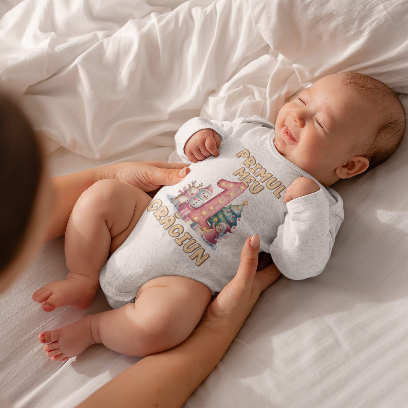 Acest body este piesa de rezistență pentru primul ei album foto de Crăciun. Este ținuta care va aduna toate complimentele de la bunici și nași. Este amintirea vizuală a purității și a bucuriei acestui moment unic. Fiecare fotografie va spune povestea primei ei întâlniri cu Moș Crăciun, iar ea va fi, fără îndoială, cea mai strălucitoare prezență de sub brad.