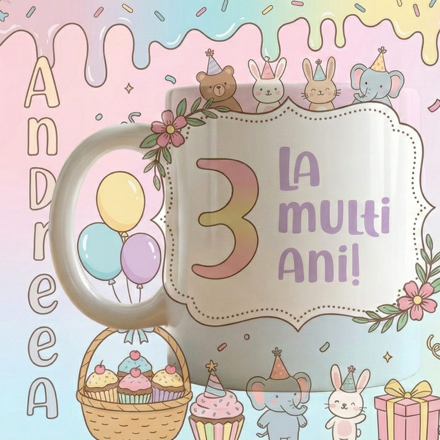 Cauți cadoul perfect care să surprindă magia copilăriei? Această cană aniversară este o „petrecere într-o cutie”. Cu un design irezistibil de dulce și vesel, este creată special pentru a celebra vârsta minunată a micuței tale, fie că împlinește 3 ani, 7 ani sau orice altă vârstă magică. Nu este doar o cană, este trofeul ei de „sărbătorită”.