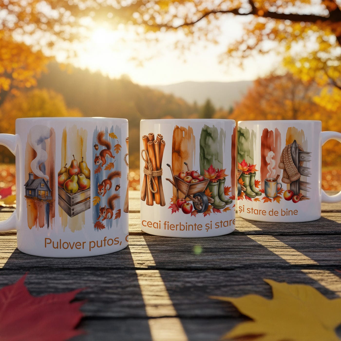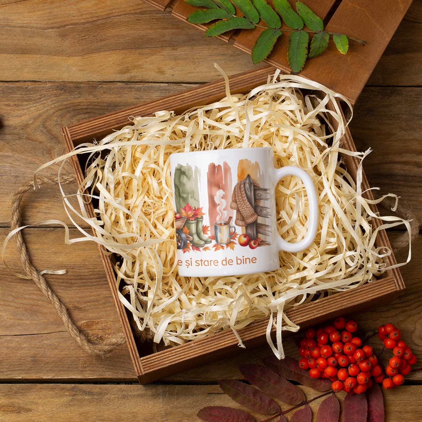 Toamna nu este doar un anotimp, este o stare de spirit. Este despre confort, căldură și bucuria lucrurilor simple. Această cană a fost creată pentru a fi un manifest dedicat acestor mici plăceri, un companion perfect pentru băutura ta caldă preferată. Cu un design superb, ce surprinde esența toamnei, și cu un spațiu dedicat mesajului tău, devine un cadou cu adevărat personal și de suflet.