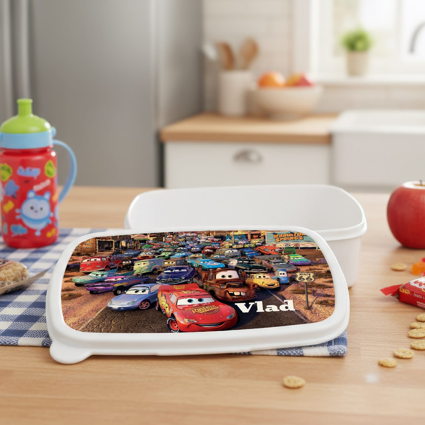 Cauți cadoul ideal pentru o zi de naștere, 1 Iunie sau pentru începutul anului școlar? L-ai găsit. Această caserolă personalizată este un dar care combină perfect utilitatea cu distracția și va fi, fără îndoială, preferata oricărui fan al universului Cars.