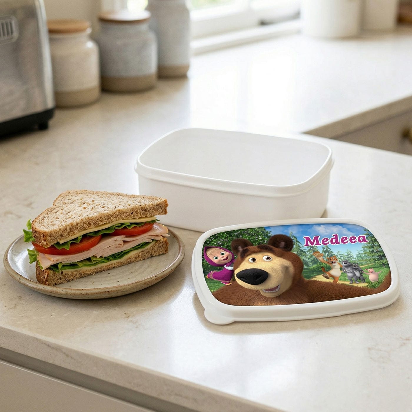 Dacă micuța ta adoră năzbâtiile Mashei și bunătatea Ursului, această caserolă personalizată este accesoriul ideal pentru pauza de masă. Concepută special pentru a fi ușor de transportat la grădiniță, școală sau în excursii, cutia de prânz aduce un zâmbet pe buze la fiecare deschidere, transformând mâncatul sănătos într-o activitate distractivă.