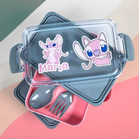 - Numele ei la vedere: În partea de jos, integrat perfect în design, vom imprima numele fetiței. Nu doar că este un detaliu deosebit, dar te asigură că pachețelul nu se va mai rătăci niciodată prin clasă!