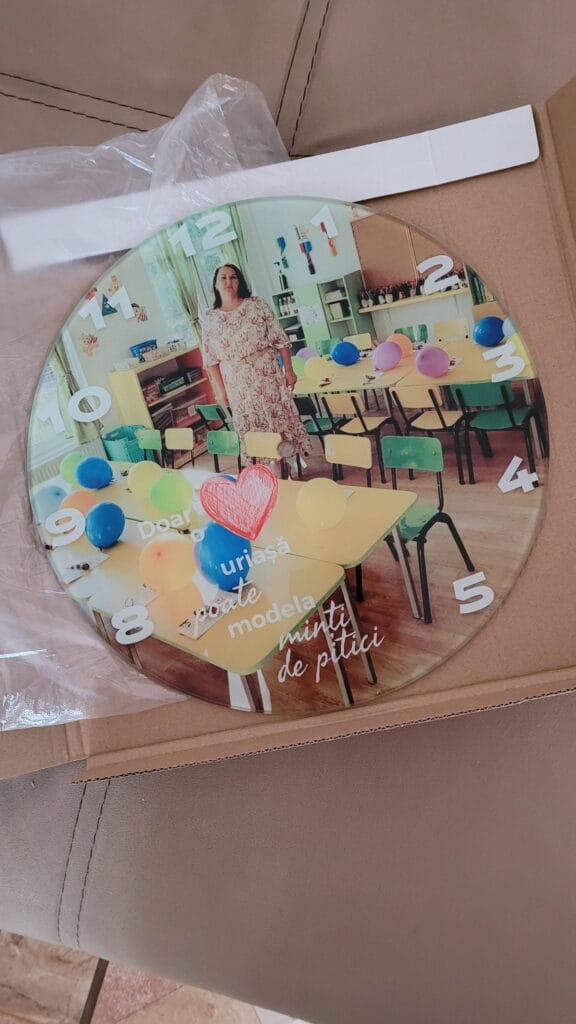 Grija purtată de profesorii noștri este inestimabilă și acest ceas personalizat este o modalitate unică de a le arăta recunoștința noastră și de a le oferi un cadou care să le amintească de importanța și impactul lor în viețile copiilor. Fie că îi dăruim în timpul sărbătorilor sau la finalul anului școlar, acest ceas personalizat este o modalitate minunată de a exprima recunoștința noastră față de cadrul didactic al copilului nostru.