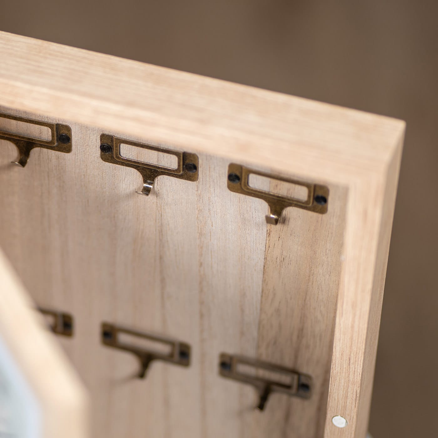 Realizată cu atenție la detalii, această cutie pentru chei este construită din lemn de calitate, cu un finisaj natural care se potrivește în orice decor, de la modern și scandinav, la rustic sau clasic. Este o piesă solidă, durabilă, gândită să fie atât frumoasă, cât și extrem de practică.