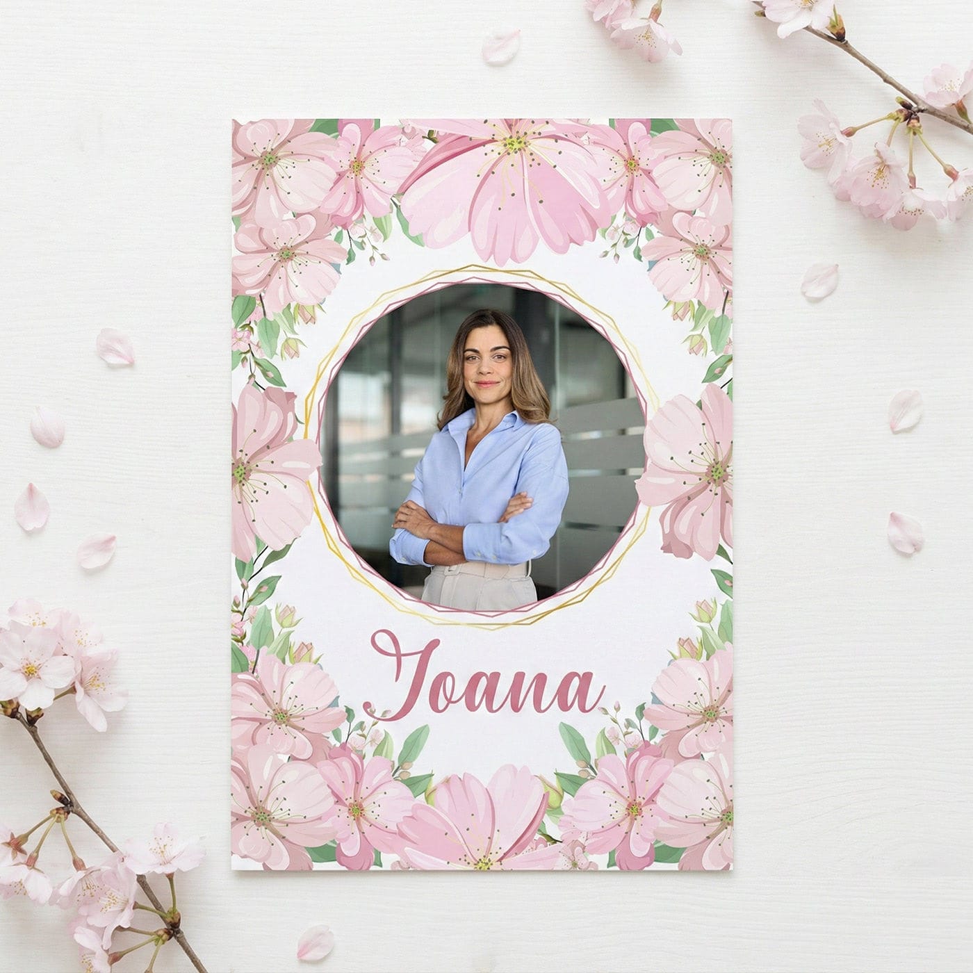 - Numele Ei, Elegant: Sub fotografie, personalizăm felicitarea cu numele destinatarei (ex: Ioana), scris cu un font caligrafic fluid și elegant.