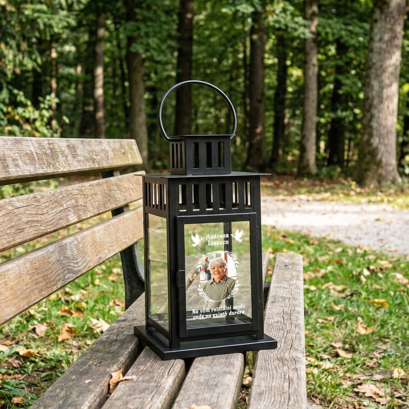 Există pierderi care ne lasă un gol în suflet, însă amintirea chipului drag și a momentelor petrecute împreună rămâne o comoară pe care o purtăm mereu cu noi. Acest felinar comemorativ nu este doar o sursă de lumină; este un omagiu tăcut, o mângâiere vizuală și un mod demn de a păstra vie prezența unui suflet plecat prea devreme.