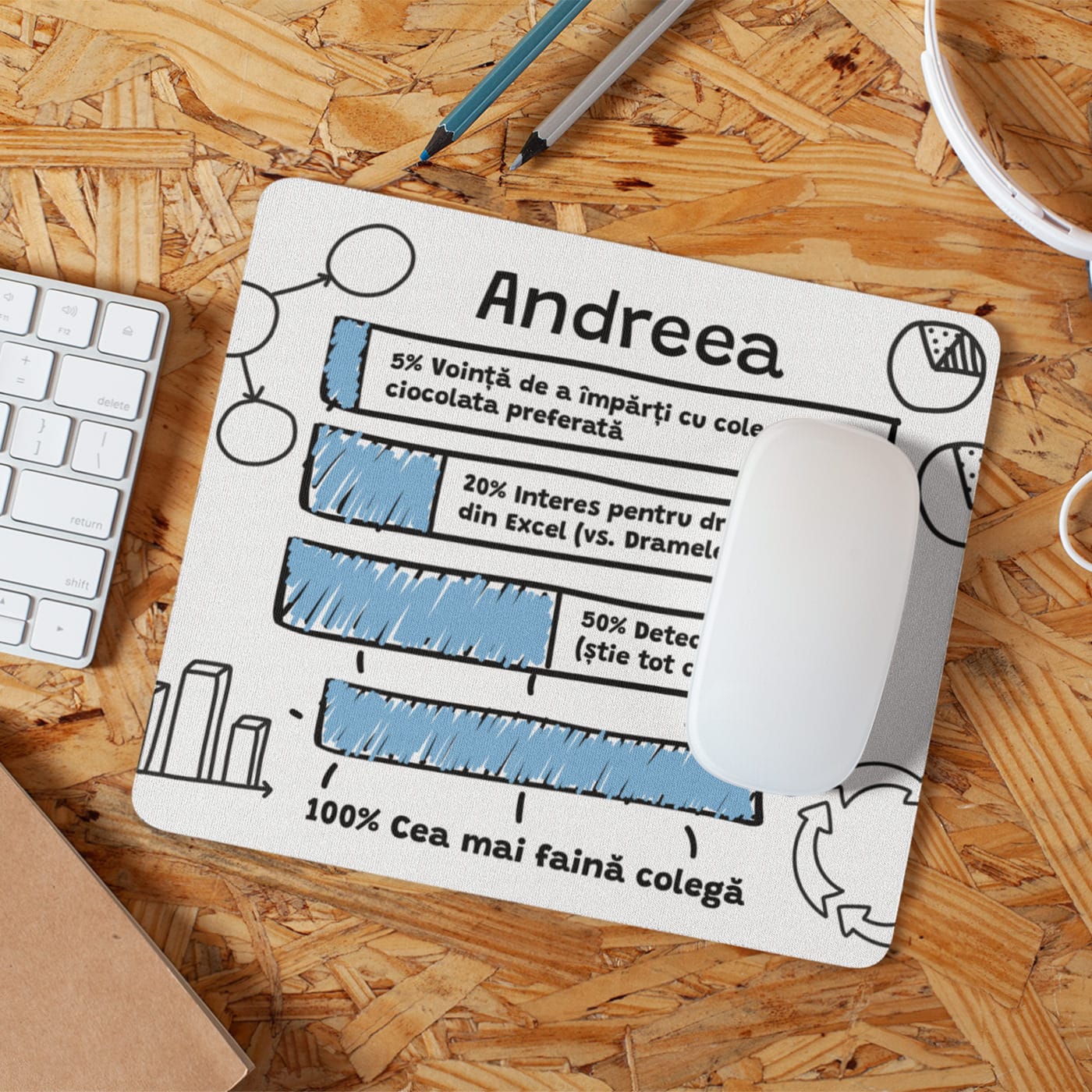 În lumea corporatistă, suntem obișnuiți cu grafice, statistici și analize de performanță. Dar ce-ar fi dacă am analiza ce contează cu adevărat? Am creat raportul oficial al acelei colege care face zilele de luni mai suportabile și ședințele mai puțin plictisitoare. Acesta nu este un mousepad. Este o evaluare obiectivă (și plină de afecțiune) a calităților care o fac, fără îndoială, cea mai tare din birou.