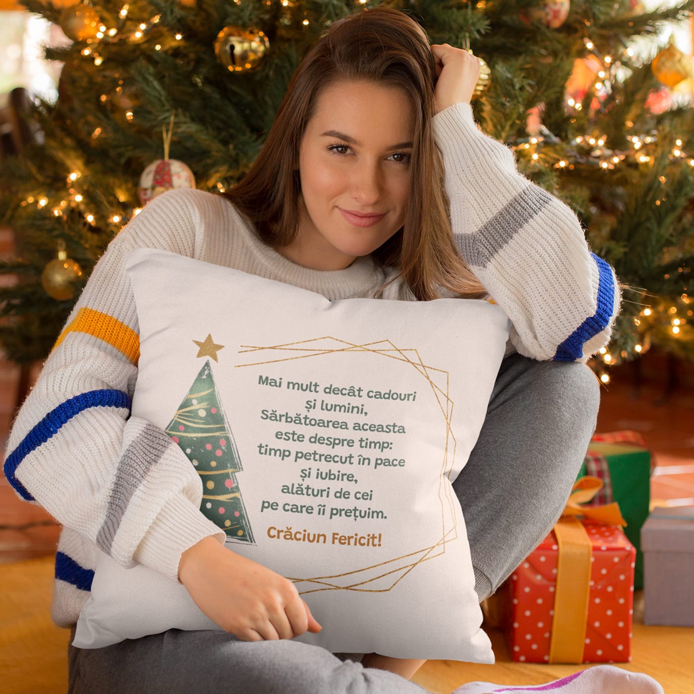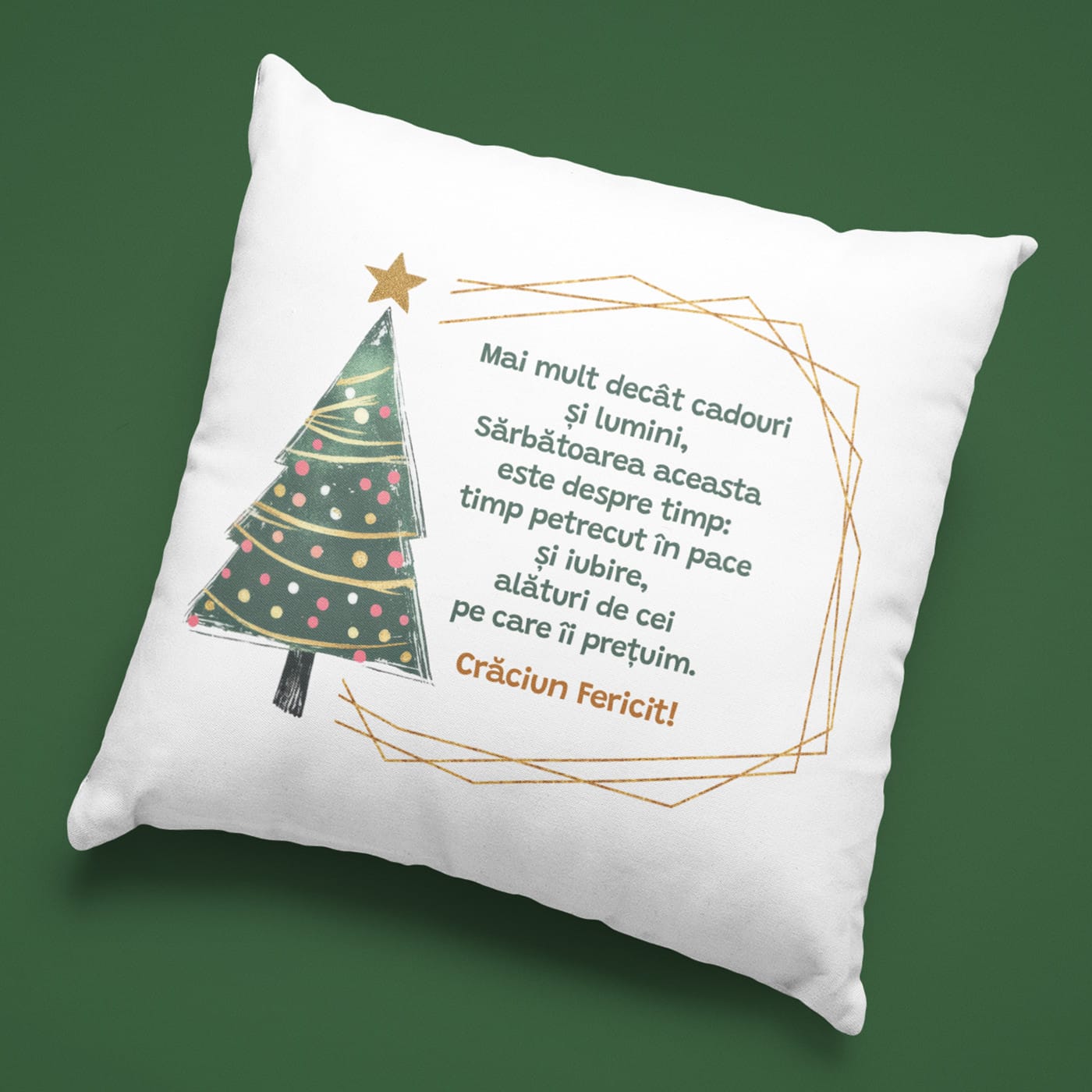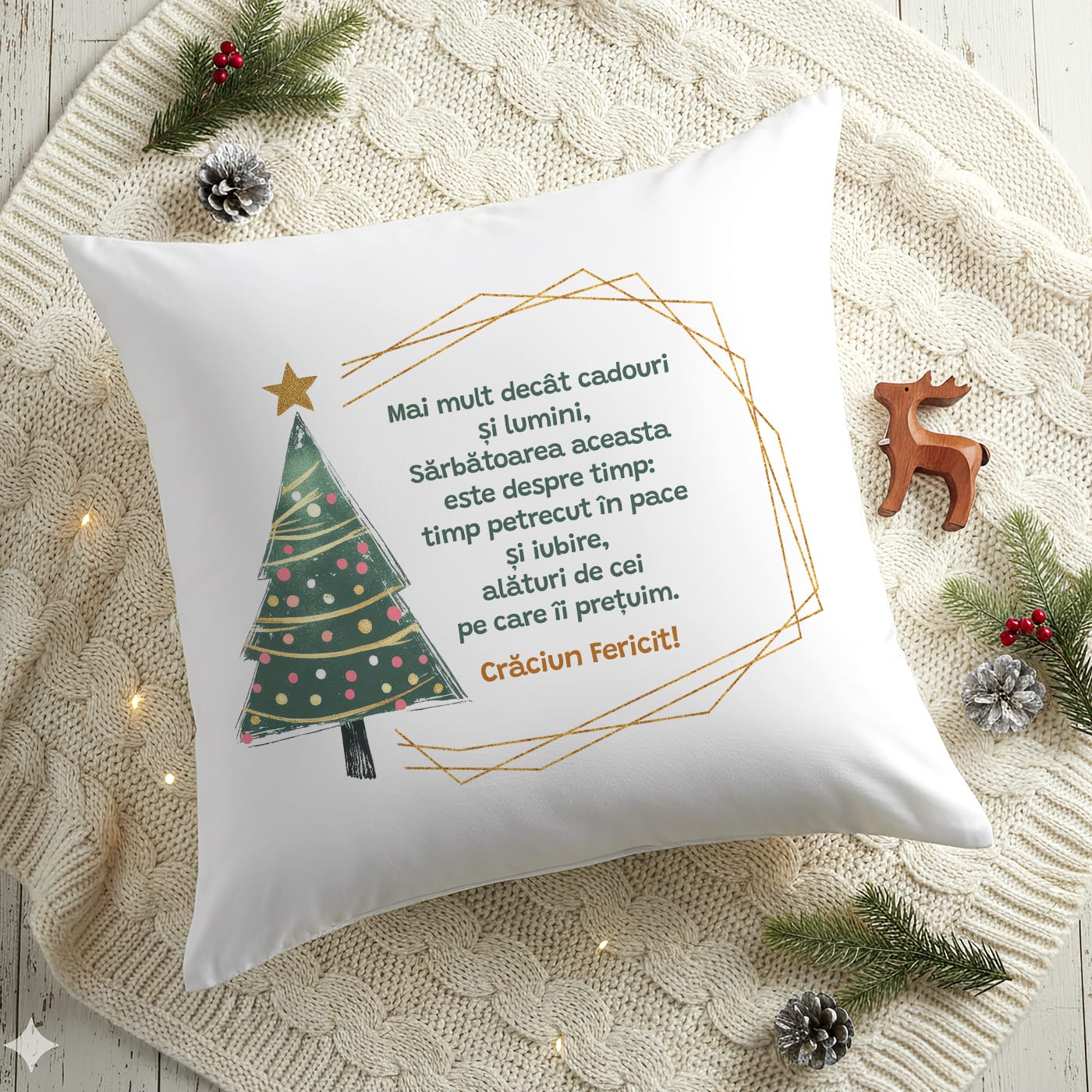 În goana nebună după cadoul perfect și luminițele cele mai strălucitoare, uneori uităm de ce facem, de fapt, toate astea. Uităm de adevărata magie. Această pernă nu este un simplu decor de Crăciun. Este o pauză. Este o filozofie pe care o poți strânge în brațe, un memento elegant care îți șoptește că adevărata sărbătoare este despre timp, nu despre lucruri.