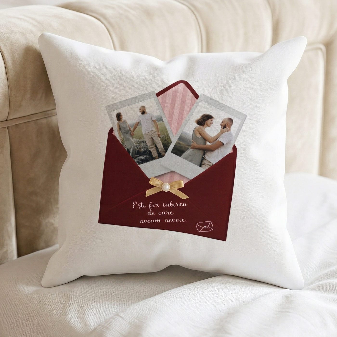 Uneori, cele mai frumoase mesaje nu sunt scrise pe hârtie, ci sunt imprimate pe obiecte care ne înfrumusețează viața de zi cu zi. Această pernă personalizată, cu un design ingenios sub formă de plic, transformă fotografiile voastre preferate într-o „scrisoare de iubire” pe care o poți strânge în brațe în fiecare seară.