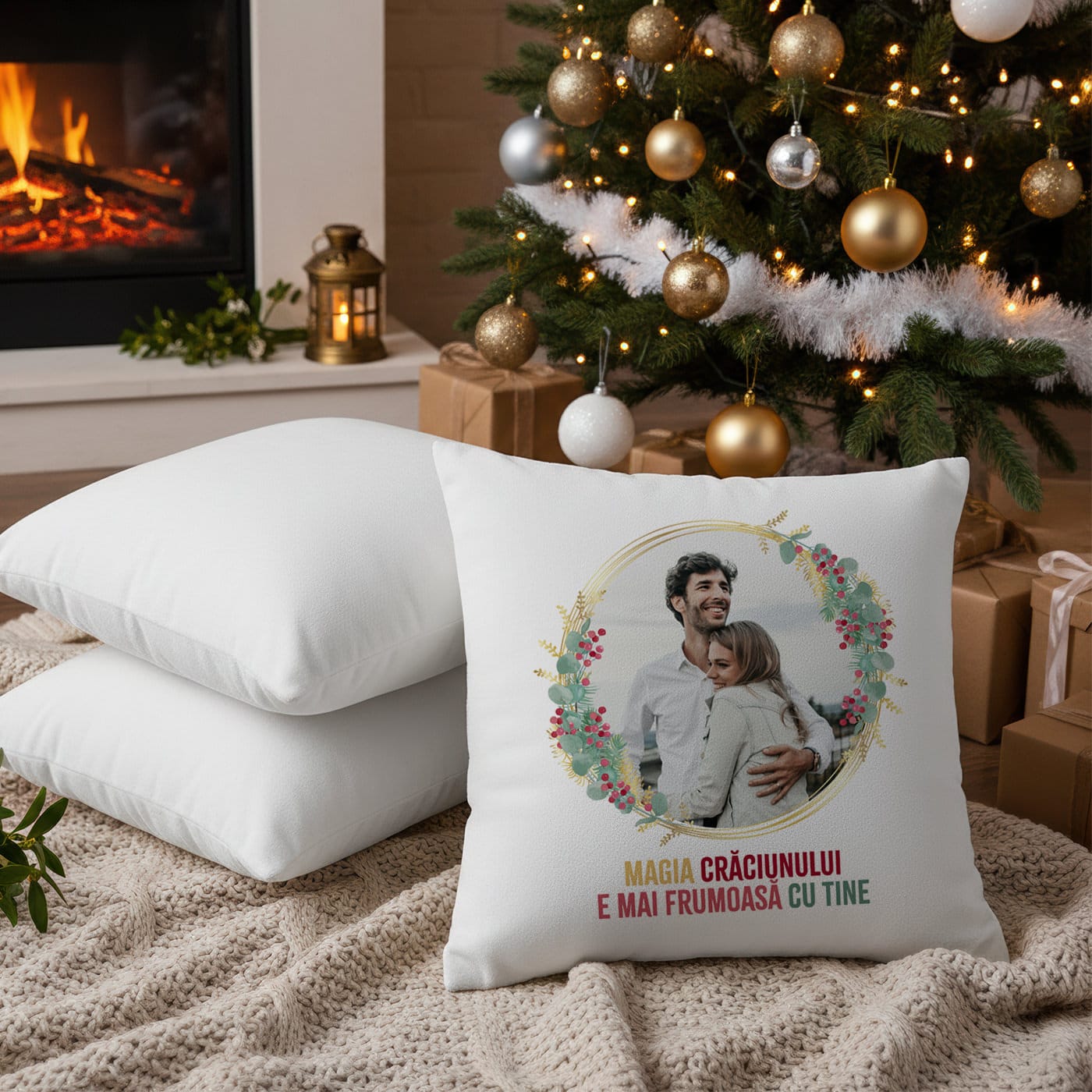 Crăciunul este despre lumini, colinde și bucurie, dar mai presus de toate, este despre a împărți aceste momente cu persoana iubită. Această pernă personalizată a fost creată pentru a fi o declarație de iubire confortabilă, un mod tangibil de a-i spune partenerului tău că el sau ea este adevărata magie a sărbătorilor. Nu este doar un obiect de decor, ci o mărturie a căldurii și a fericirii pe care le simțiți împreună.