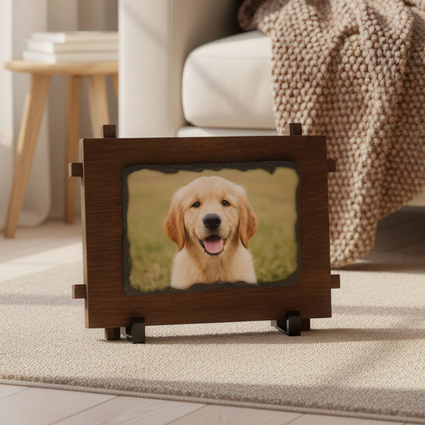 Datorită designului său atemporal, rustic-elegant, acest cadou este incredibil de versatil. Este perfect pentru a celebra o aniversare, o zi de naștere, pentru a oferi un cadou de casă nouă părinților sau bunicilor, sau pur și simplu pentru a transforma o poză cu animalul tău de companie într-un obiect de suflet.