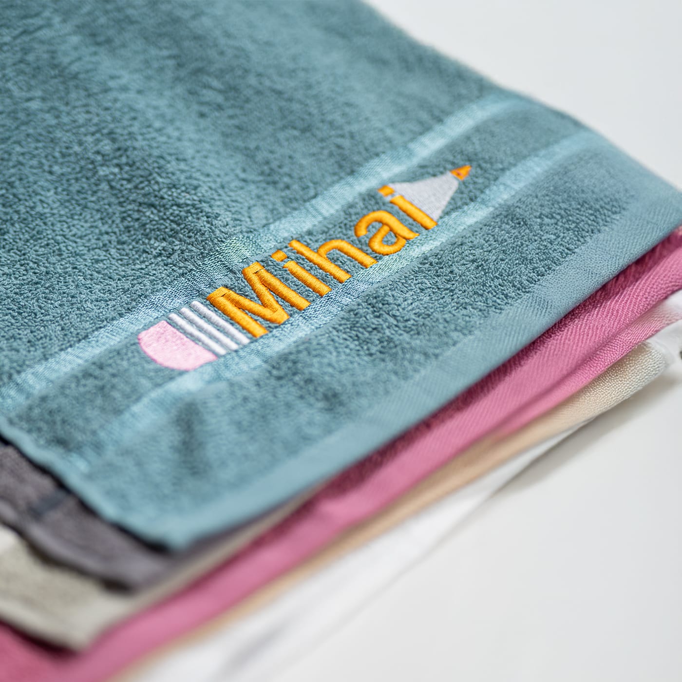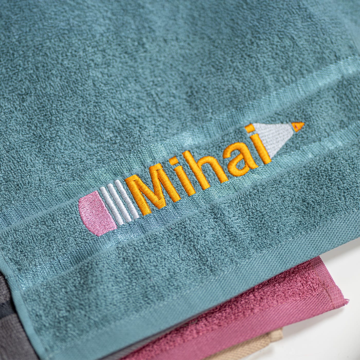 Realizat dintr-un material moale și fin, prietenos cu pielea delicată a copiilor, prosopul nostru de 30×50 cm este perfect pentru a fi luat în ghiozdan (sau pentru a fi atârnat în cuier). Ceea ce îl face cu adevărat deosebit este personalizarea. Numele copilului tău este brodat cu atenție și măiestrie, integrat într-o ilustrație simplă și veselă: un creion. Astfel, cel mic își va recunoaște instantaneu prosopul și se va simți mândru să îl folosească.