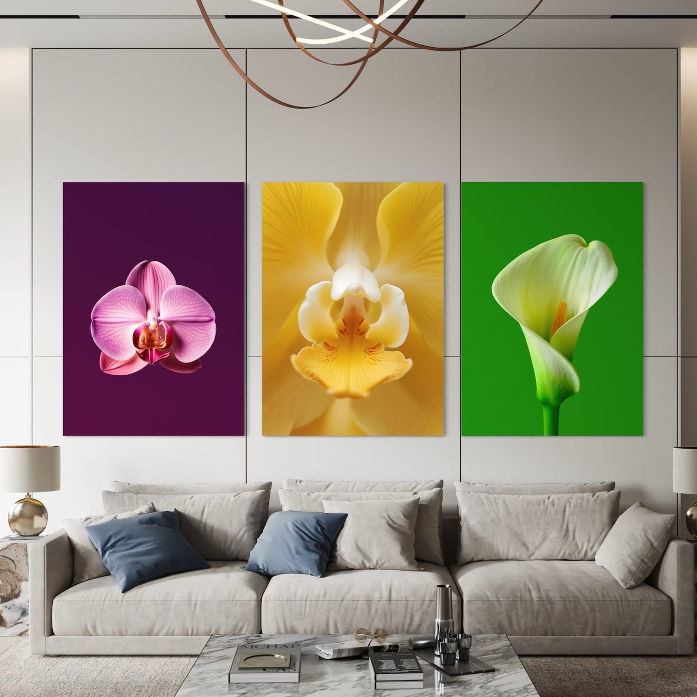 Acest triptic este perfect pentru a da viață unui living modern, deasupra unei canapele minimaliste. Este o alegere excelentă pentru un perete lung dintr-un hol de intrare, creând o primă impresie de neuitat. De asemenea, se potrivește de minune în spații de birouri creative, săli de așteptare sau orice interior care are nevoie de o infuzie de culoare și dinamism. Este cadoul ideal de casă nouă sau de nuntă pentru un cuplu cu gusturi moderne.