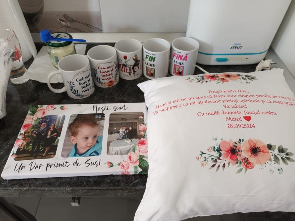 Alegerea nașilor este un moment important, iar recunoștința față de ei merită un cadou pe măsură. Acest set promoțional este soluția completă pentru a le mulțumi părinților spirituali. Conținând o selecție de produse personalizate, de la căni și tablouri pe ardezie la alte surprize, acest pachet este un gest grandios de apreciere.
