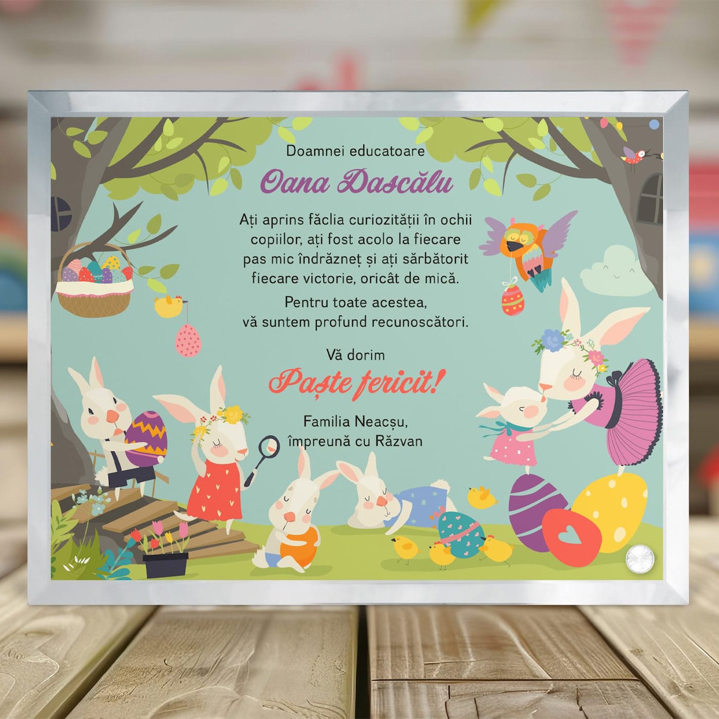 Sticlă Personalizată de Paște pentru Educatoare – Cadou Unic cu Mesaj de Recunoștință