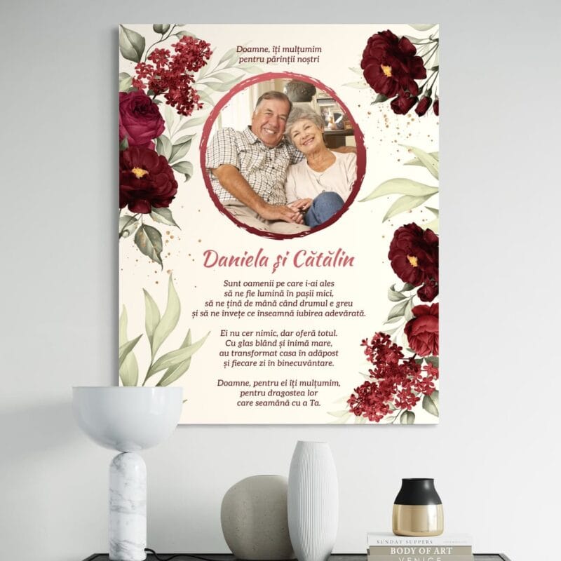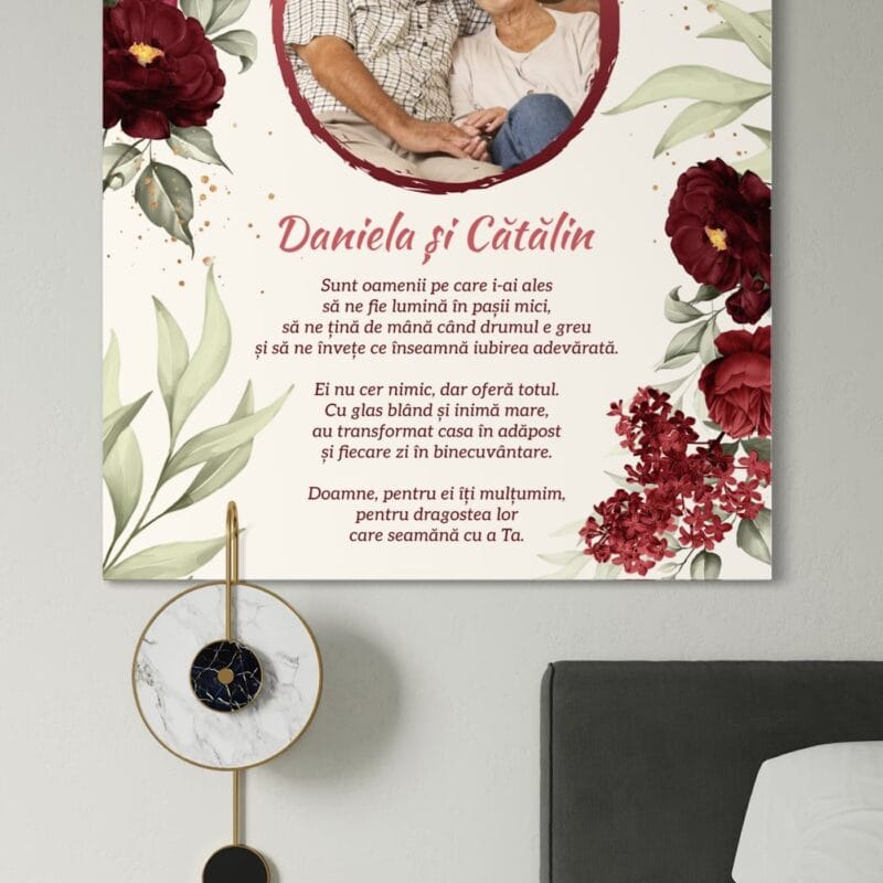 Tablou Canvas Personalizat Părinți | Cadou Emoționant cu Poză și Mesaj