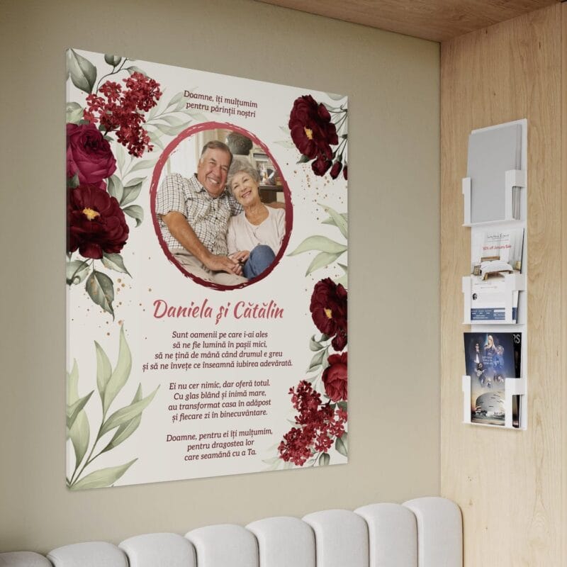 Știi acele momente când cuvintele par prea mici pentru a cuprinde recunoștința imensă pe care o simți pentru părinții tăi? Pentru acele clipe, am creat acest Tablou Canvas Personalizat „Doamne Îți Mulțumim pentru Părinți”. Nu e doar un obiect decorativ, ci o fereastră către inima ta, o mărturie a iubirii și aprecierii tale profunde.