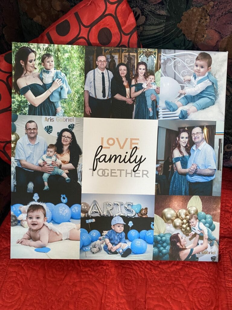 Tabloul Canvas Personalizat „O Viață Alături de Tine” este o călătorie emoționantă prin amintirile împărtășite cu persoana iubită. Conceptul nostru îți permite să alegi 8 fotografii prețioase care vorbesc despre iubirea necondiționată și momentele neprețuite trăite împreună.