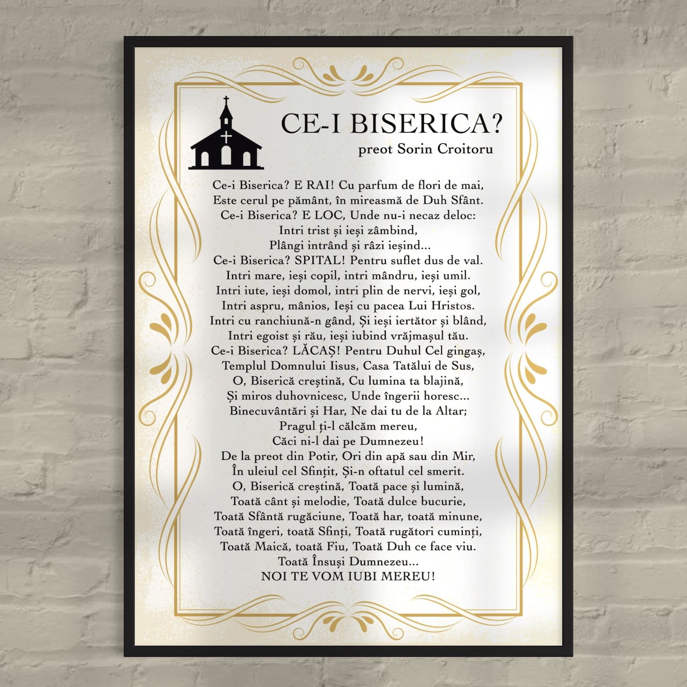Indiferent de textul ales, acesta va fi încadrat de un chenar fin, cu detalii botanice aurii, care adaugă o notă de eleganță fără a concura cu mesajul. Fonturile clasice și așezarea în pagină sunt gândite pentru lizibilitate perfectă și un echilibru vizual plăcut. Arată bine și pe peretele unui living modern și pe cel al unui birou cu mobilă de lemn masiv.