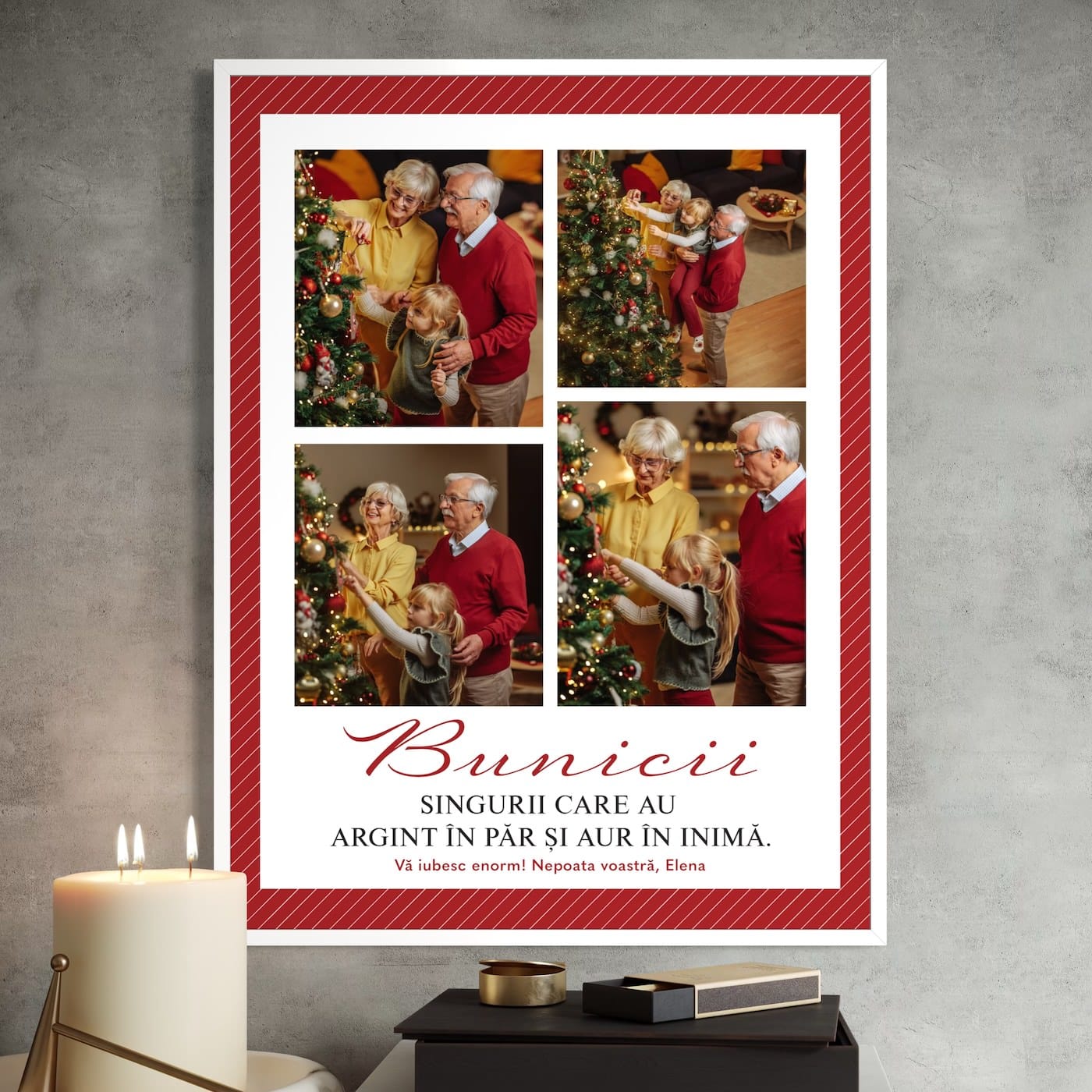 Un astfel de omagiu merită cele mai bune materiale. Tabloul este imprimat la o rezoluție excepțională, pe hârtie foto de calitate, și vine deja înrămat într-o ramă elegantă, gata de a fi agățată pe perete sau așezată pe comodă. Este un cadou care va dăinui, la fel ca dragostea bunicilor.