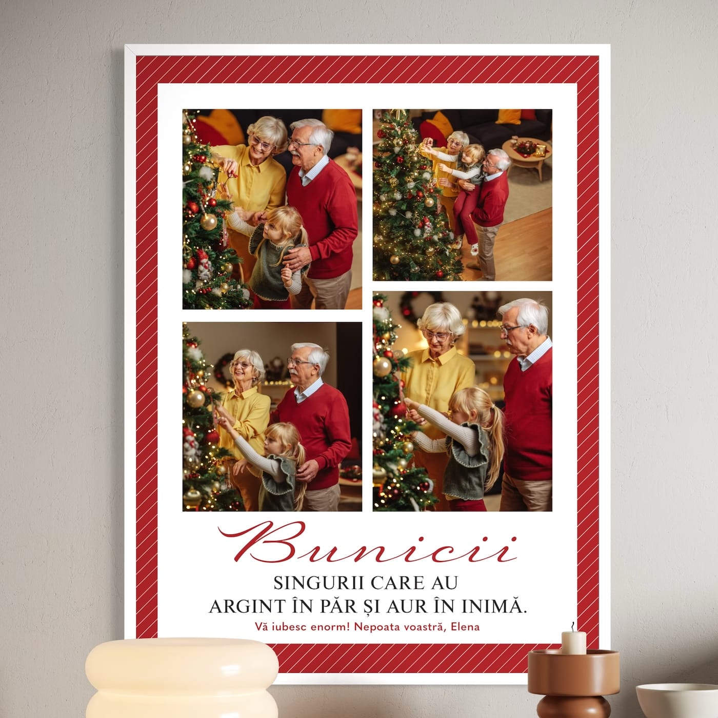 Acest mesaj poetic este completat de o dedicație personală din partea nepoților (ex: „Vă iubesc enorm! Nepoata voastră, Elena”), transformând tabloul într-o scrisoare de dragoste deschisă, pe care o vor privi cu mândrie în fiecare zi.