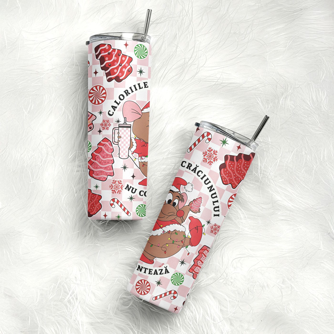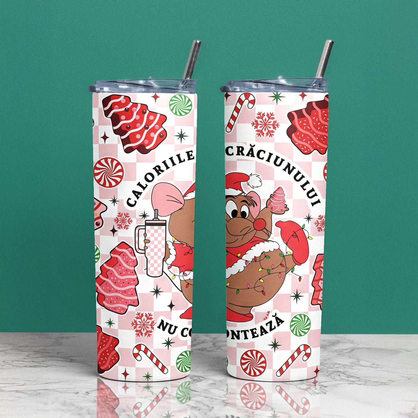Designul este o capodoperă a sincerității festive. Un șoricel adorabil, un adevărat „spirit animal” al Sărbătorilor, s-a înfășurat în luminițe și este gata de festin, înconjurat de prăjiturele, acadele și fulgi de nea. Este o paradă a tuturor lucrurilor bune, sub sloganul care ne eliberează pe toți: