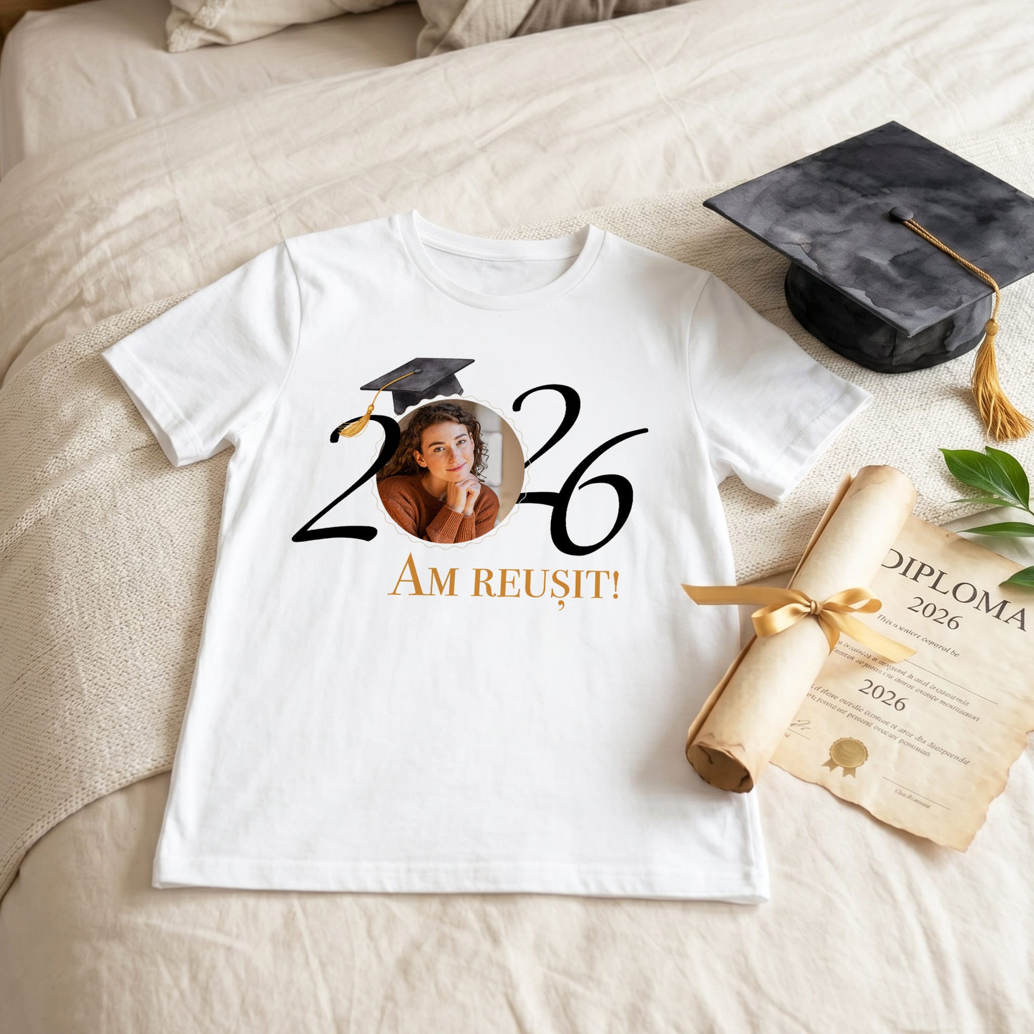 Ziua în care rostești Am reușit este una dintre cele mai importante borne din parcursul tău academic. Pentru a onora acest moment plin de entuziasm, am creat un tricou de absolvire care pune în centrul atenției reușita ta personală. Integrarea fotografiei tale în cifrele anului de absolvire transformă un simplu obiect vestimentar într-o piesă de colecție, ideală pentru a fi purtată la cursul festiv sau la ședința foto de grup unde vrei să ieși în evidență.